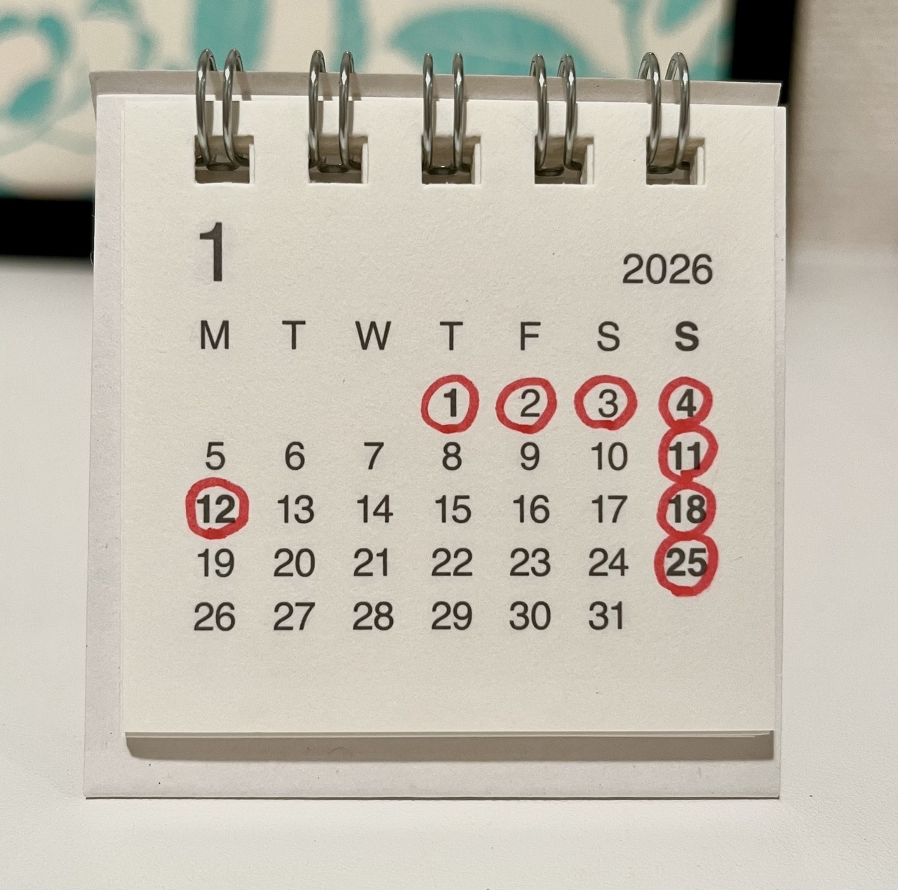 1月は、1~3日、8日(月)、14日(日)、15日(月)、22日(月)、29日(月)がお休みとなります。