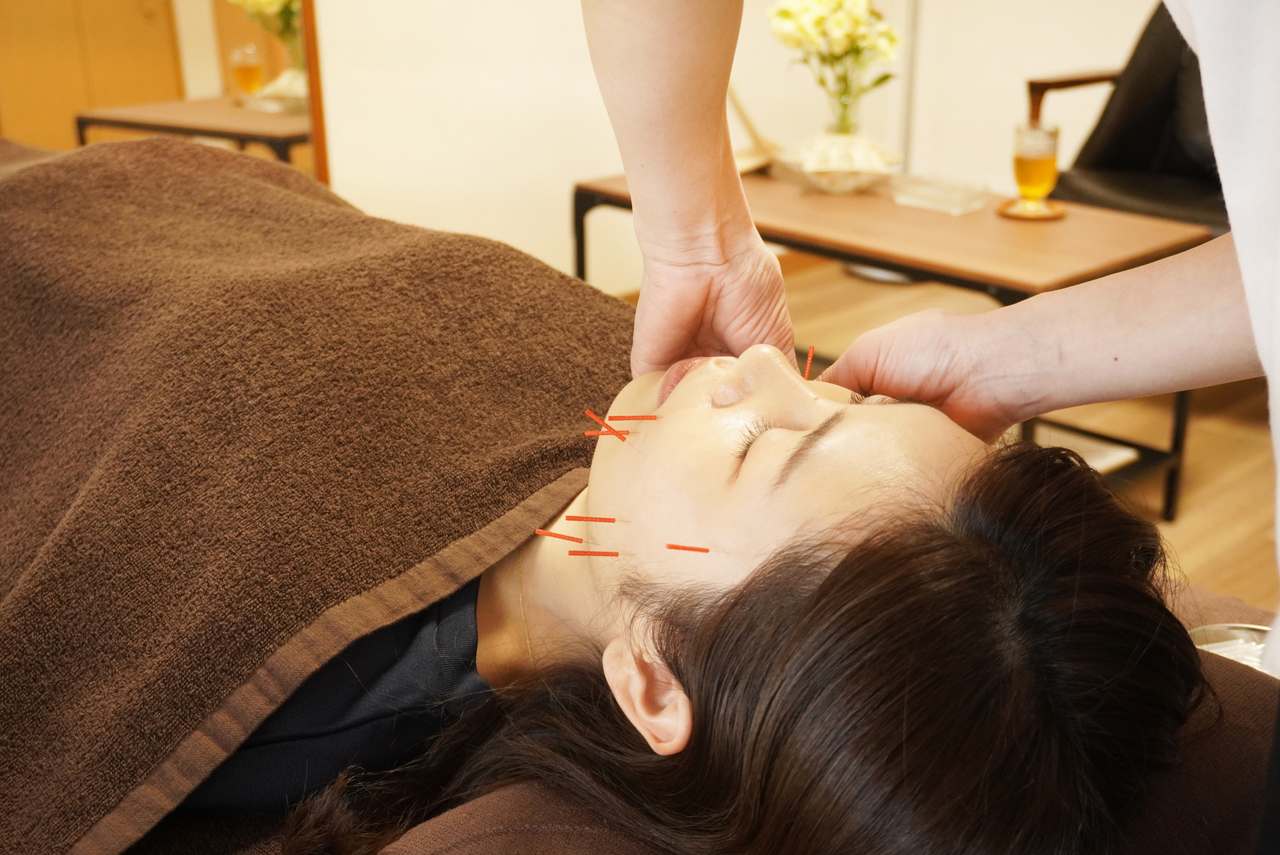 お顔の施術と全身の鍼灸治療がセットで受けられる健康美人コースで施術をさせていただきました。